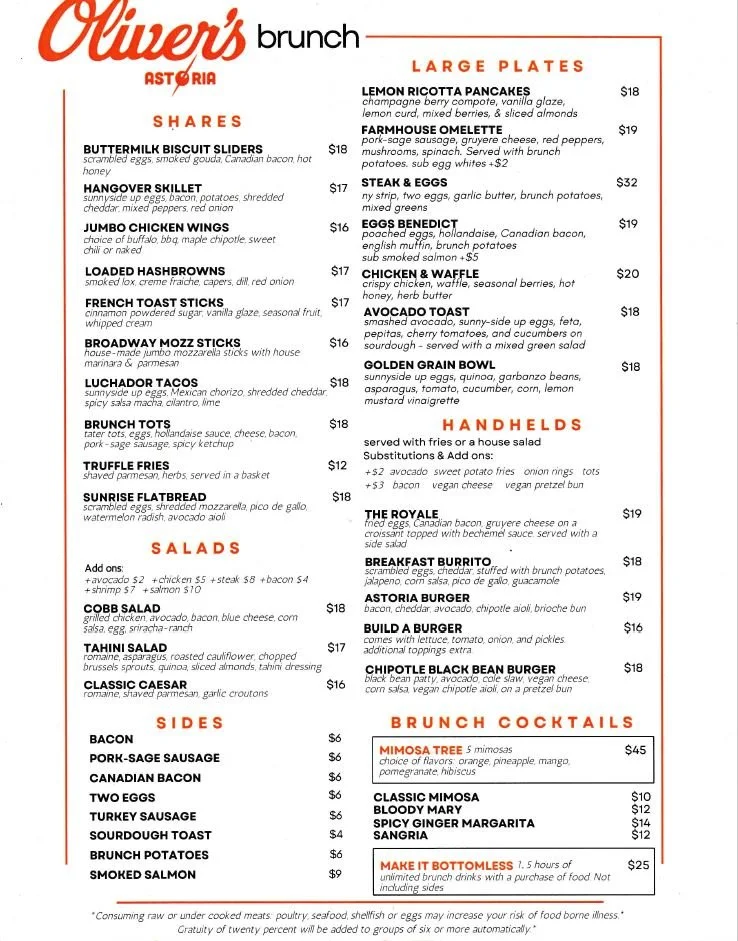 1.5 hours of bottomless drinks with the purchase of food. not including sides. - Saturday & Sunday 'til 4pm